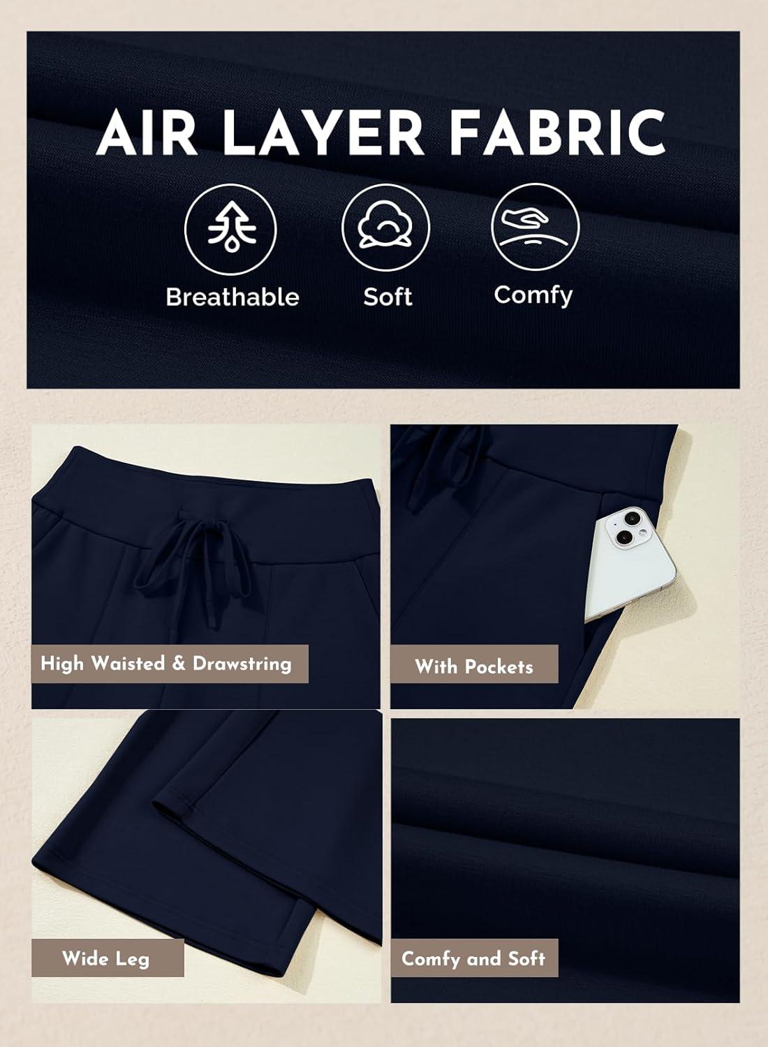 Aleumdr Lounge Pants for Women Wide Leg Sweatpants High Waisted Baggy Yoga Palazzo Flowy Pants with Pocket(A3 Navy Blue)