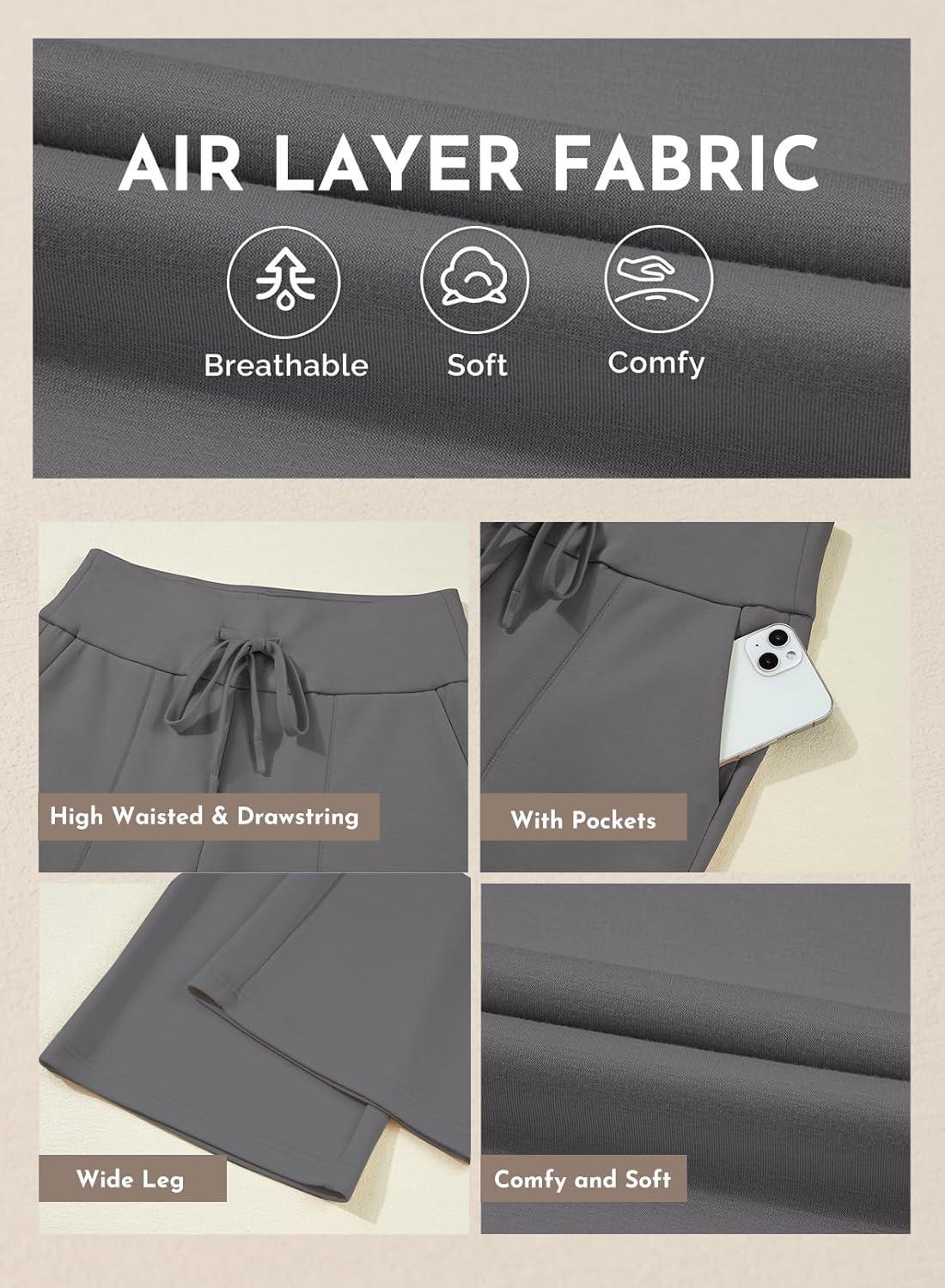 Aleumdr Lounge Pants for Women Wide Leg Sweatpants High Waisted Baggy Yoga Palazzo Flowy Pants with Pocket(A7 Dark Grey)