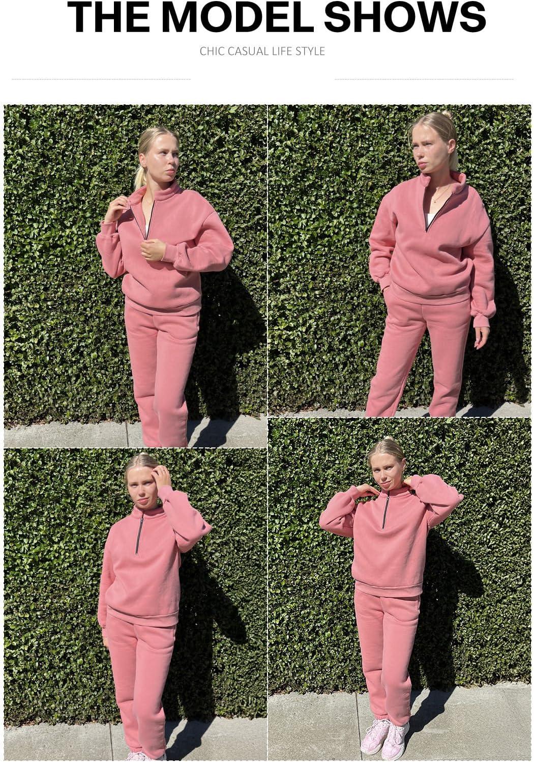 Aleumdr Women 2 Piece Outfits Sweatsuit Oversized Half Zip Pullover Long Sleeve Sweatshirt Jogger Pants Set with Pockets(Pink)