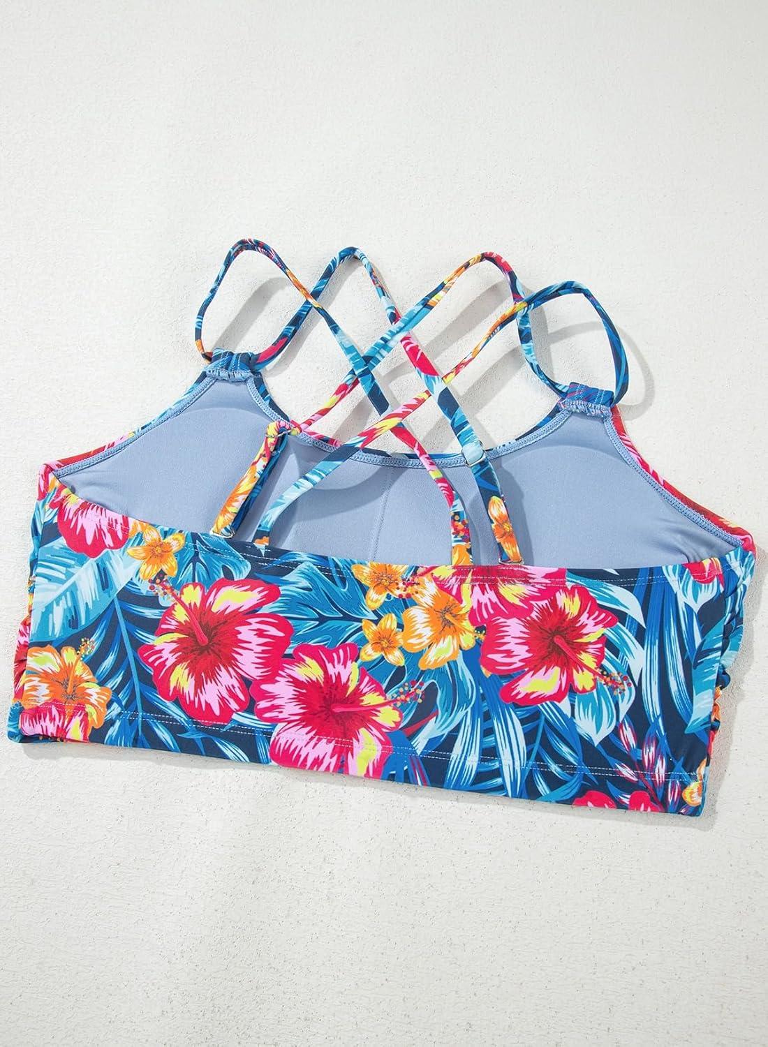 Aleumdr Womens Athletic 3 Piece Tankini Swimsuit with Shorts Tank Tops Bathing Suit with Bra Open Back Athletic Swimwear(Leopard)