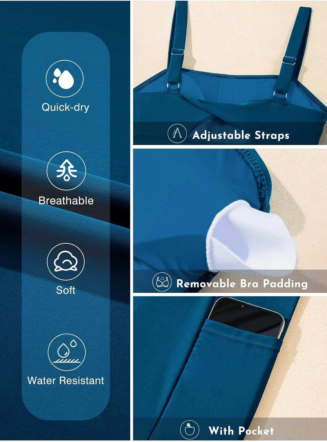 Aleumdr Women’s One Piece Swimsuit Tummy Control Swim Dress Modest Full Coverage Skirt Bathing Suit with Pockets(Blue Sapphire)