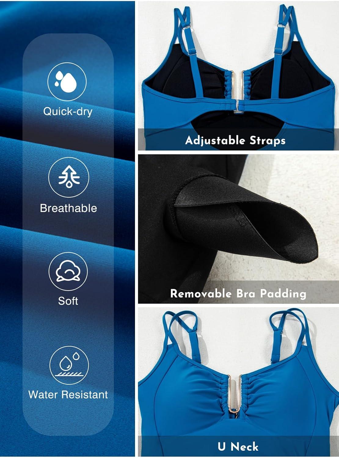 Aleumdr Womens One Piece Swimsuits Tummy Control Bathing Suit U-Wire Cutout Ruched Slimming Swimwear(Blue)