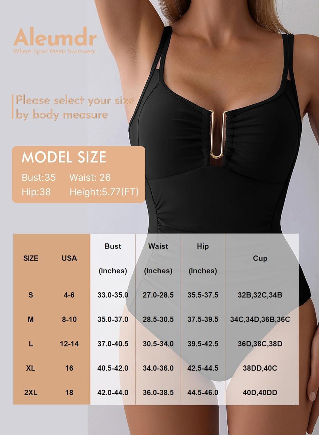 Aleumdr Womens One Piece Swimsuits Tummy Control Bathing Suit U-Wire Cutout Ruched Slimming Swimwear(Dark Brown)