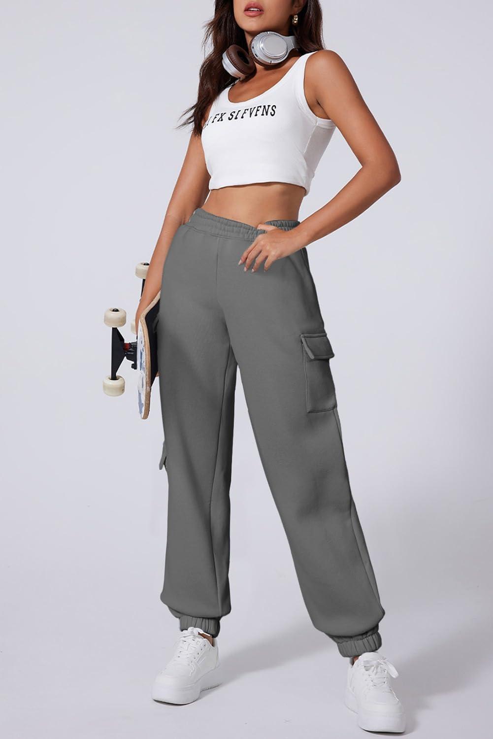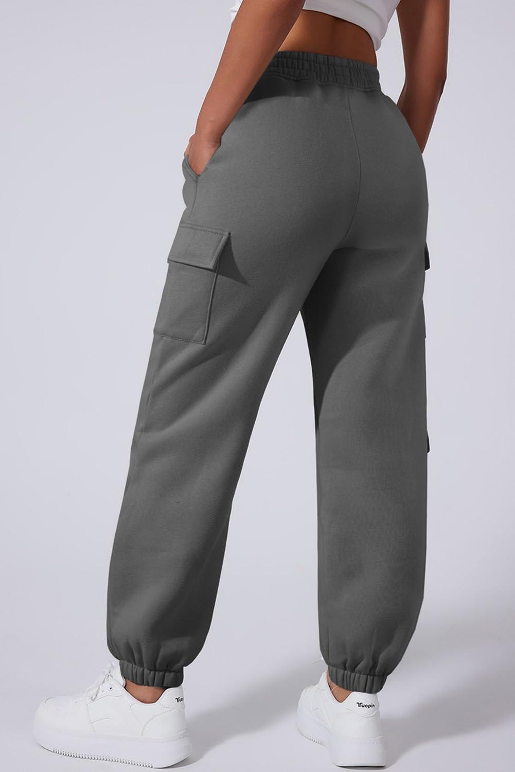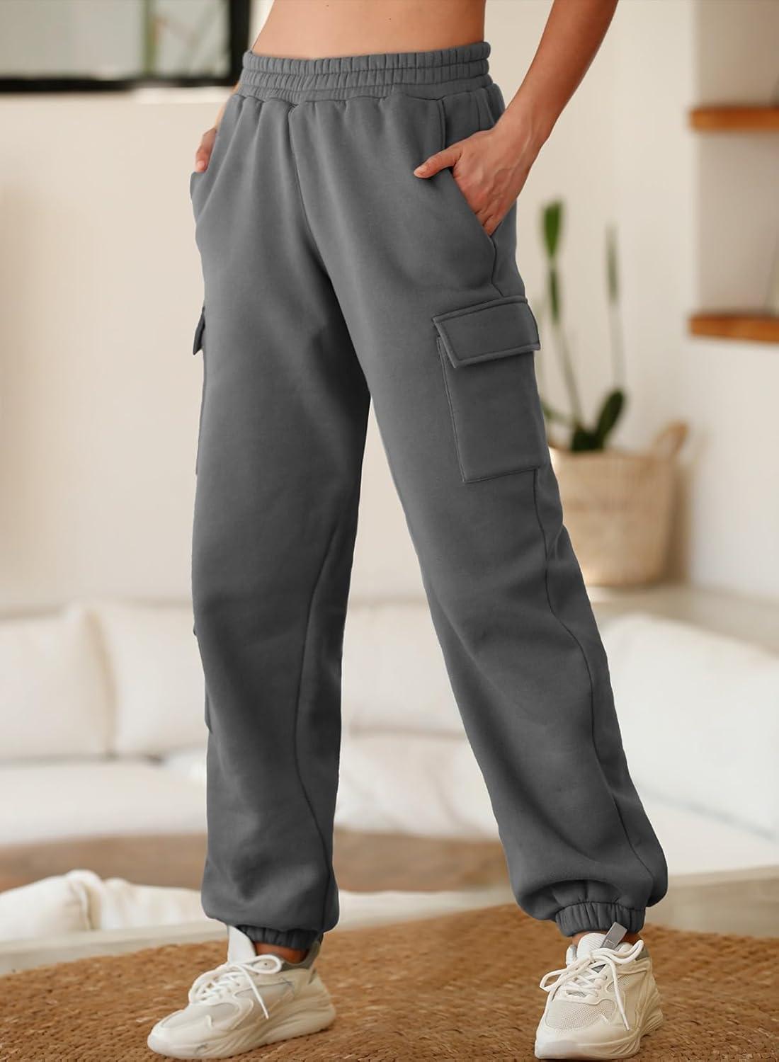 Aleumdr Womens Sweatpants Cargo Joggers Baggy Sweat Fall Pants Athletic Cotton Fleece Lined Casual Pants with Pockets(A9 Dark Gray)