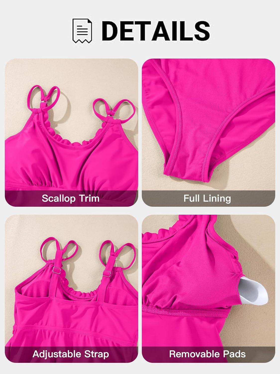 Get up to 50% off on Aleumdr Women’s Tankini Bathing Suit 2 Piece Tummy Control Swimsuit Scallop Trim Tankini Top with Bottom(Rose Red) styles during our spring sale event.