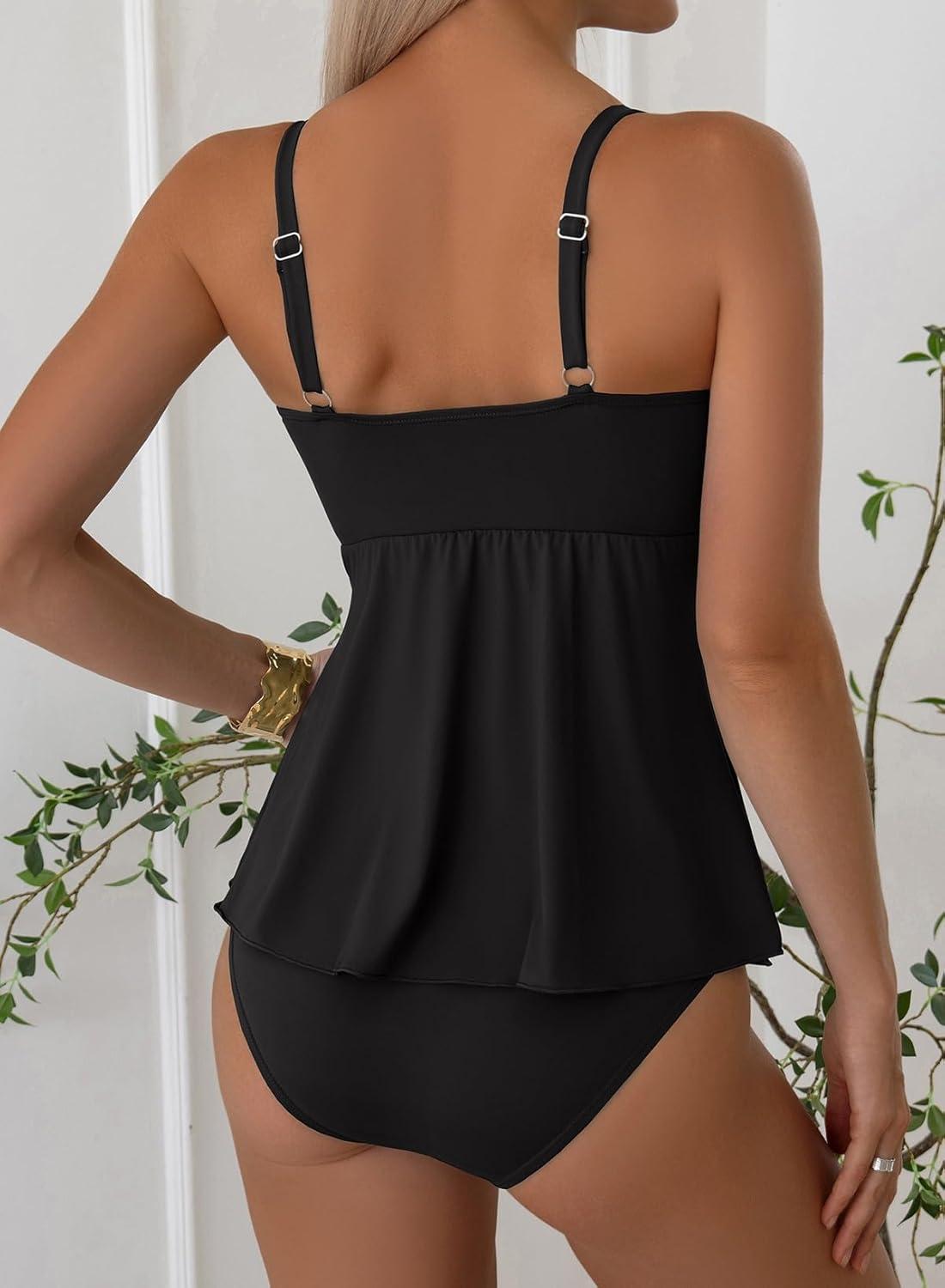 Aleumdr Women’s Tankini Bathing Suits Bandeau 2 Piece Swimsuits Shell Swim Tank Top with High Waisted Bottom(Black)