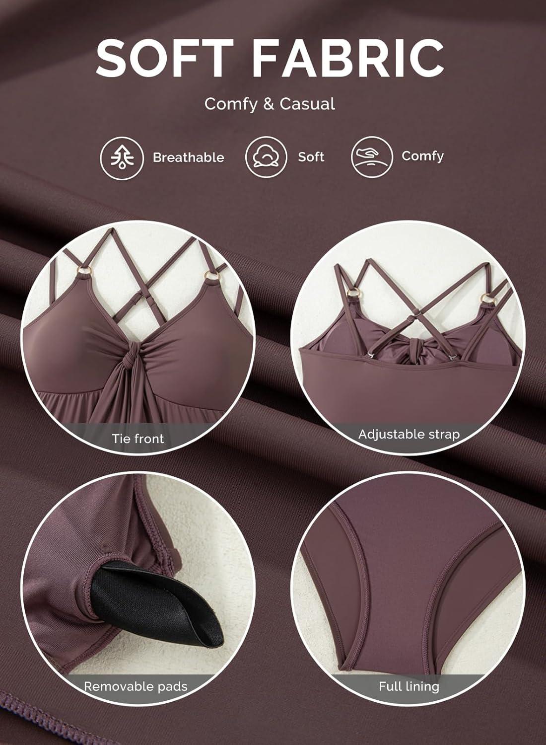 Aleumdr Women’s Tankini Swimsuits Tummy Control Two Piece Bathing Suit V Neck Tie Front Flowy Swim Top with Bottom(Coffee)
