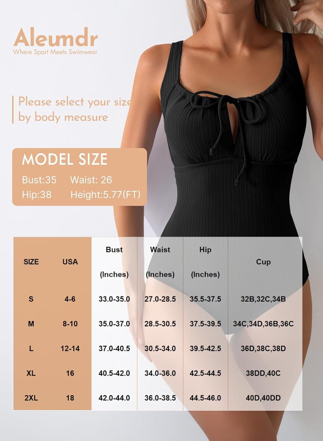 Aleumdr Womens Textured One Piece Swimsuit Tummy Control Bathing Suit with Bow Tie Knot Cutout Ruching Swimwear(Black)